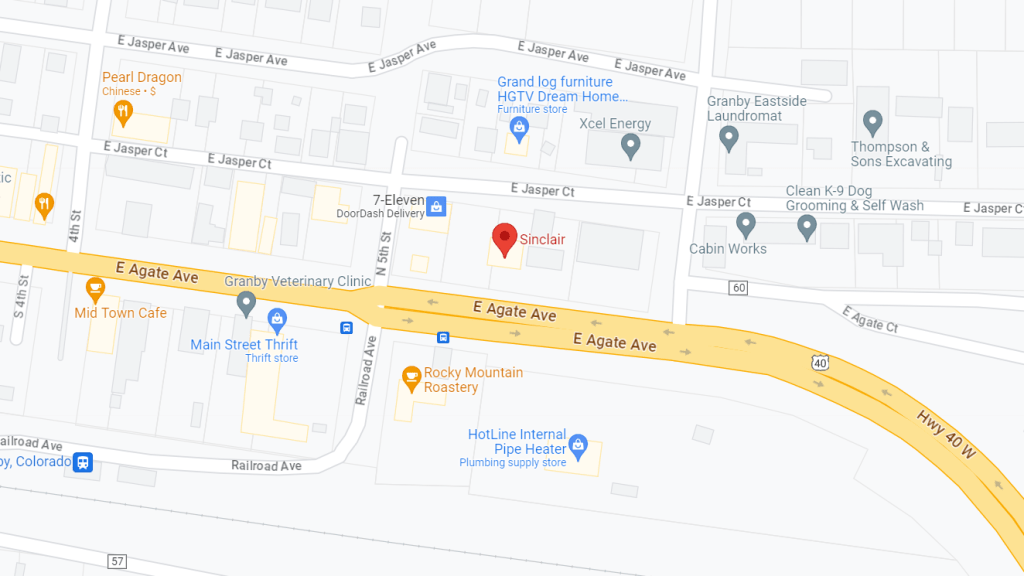 We are located at 551 East Agate Avenue Granby, CO 80446 – Inside the Sinclair.